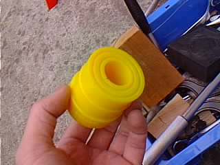 ちょっと見にくいんですが、フロントのショックにバンプラバーが付いてにないので、思いっきり沈むと写真のようにインナーカバーにタイヤが当たってしまうんです。それでバンプラバーを前だけ付けました。