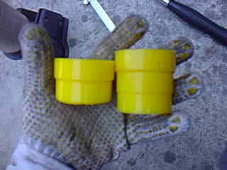 長さが6cmくらいあるんですが、そのまま付けるとバンプラバーがショックと当たってしまうので左のように一段切りました。