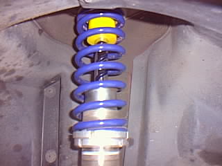 取り付けた所です。これはジャッキアップされた状態ですが、降ろすとショックの動く範囲が1cmから2cmくらいに付きました。