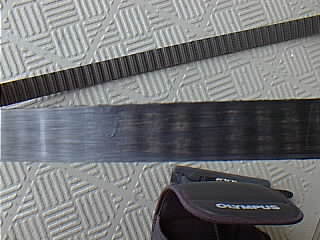 タイミングベルトの表で、黒い所が歯の裏です。よーく見るとFIATの文字がうっすら残ってる。
