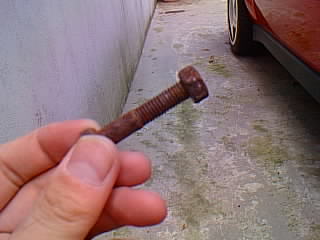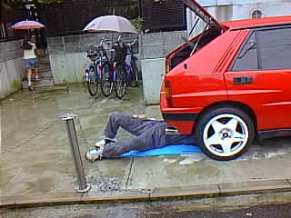 | 今日は新しいボルトを買いに行くため早起きして、近所の金物屋さんに速攻で買いに行ってきた。せっかく新しいボルトを使うので、錆びにくいステンのボルトにした。買ってきた後、雨がいっぱい降ってるにも関わらず車の下に潜り急いで取り付けて、作業が終わった後は背中と尻がビチョビチョに濡れてしまった。 いよいよ最初のエンジン始動!キーを回しエンジンをスタートさせた。 「ブオンボボボ・・・(ポロポロ・・・が混じってる)」 おおっエンジンがかかったー!。(かかって当たり前なんだけど)(^^)「ボボボ・・・・」しばらくアイドリングの音に聞き入って感動から落ち着いて気付いた。音がでかい!!。これでうちのデルタに爆音発生装置が付いてしまった。 |