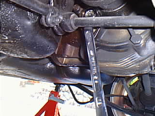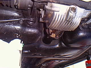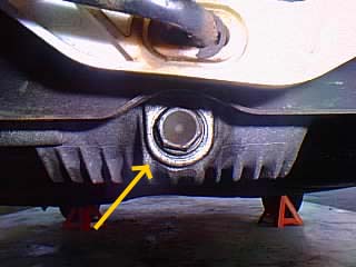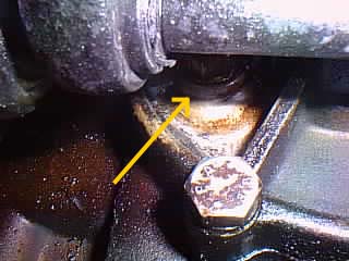わかりずらい所に有るんですが(進行方向左側のドライブシャフト脇)、こっちはオイルを入れる側のボルトです。
