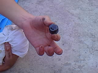 これは注入口に付いてたボルトです。かなり真っ黒になってました。 |