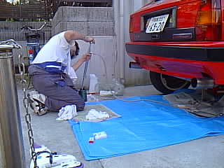 オイル缶から直接ポンプでシュコシュコやります。見る見る入っていくのが気持ちいいです。