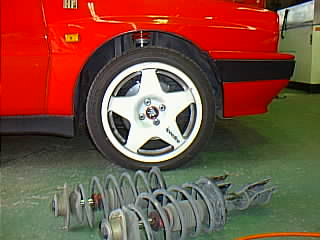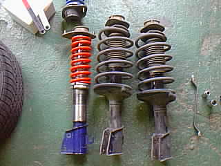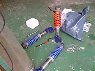 「極悪化計画その2」として車高調を付けました。取り付け作業は、私にアンダーガードを譲ってくれたいのうえ氏の指導により行いました。(いのうえさんありがとうございますm(_
