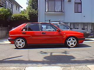 今のところタイヤとフェンダーの隙間は、フロントが指2本くらい、リアが2本半という感じです。個人的にはもうちょっと前屈みが好きなので、フロントを指2本の状態から1cm落とすように調整しました。その後、ちょっと動かして正確な高さを見ようとジャッキを降ろして車庫を出るときガリッって音がしちゃいました。今度は車庫に入れてみます。またガリッて音がしました。「ゲゲッ、やりすぎたかな?」って感じですね。下を覗くと案の定触媒のフランジを擦ってました。(^^;「このままでは車庫から出れなくなる」っていうことで慌てて1cm上げて元に戻しました。しかし車庫の出入りの角度によっては擦ってしまうようです。(^^;