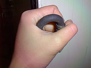 ちょっと見にくいんですが亀裂が入ってます。まだ表面だけかもしんないんですが、このまま使ってるとそのうち中まで亀裂が入って危ないです。 |