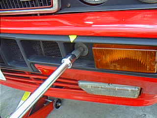 うちのデルタは牽引フックが付いてるので、バンパーを固定するボルトが剥き出しですが、普通はウインカーレンズのプラスティックねじを外してレンズカバーを外します。
