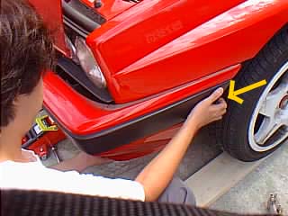 さっき仮止めしたフロントのバンパー固定ボルトを外してバンパーを前に引き出せばおしまい。元に戻すときはフェンダー付近にあるバンパーを固定する所に、バンパーをうまく差し込み、逆の手順で進めれば元通りになります。 |