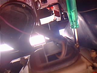 フォグランプ裏のカバーを閉めてるネジを外してる所。 |