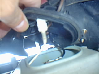 カバーをめくるとフォグの外から中へ入っていく黒と白の配線がコネクタに刺さってます。この配線のコネクタを外します。 |