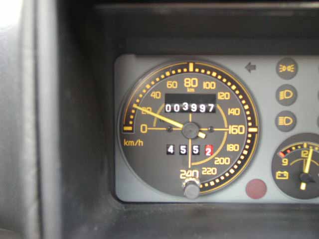 B'sGarageに向かう途中の辰巳PAでトイレ休憩中に撮った写真。フォーカスが合ってない。(^^; 首都高を走ってるときに普段ステアリングが邪魔で全く見えないスピードメーターなんですが、何気なく見たら、ナント!そこそこの速度で走行してるのに20km/hを指しているじゃないですか。やってくれるぜ流石はデルタ。お約束のごとく洗礼を受けてしまった。メーター直して貰わなきゃ。(前の16vは納車されたときブースト計が動かなかった。) |