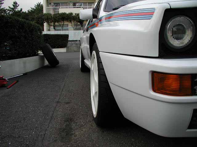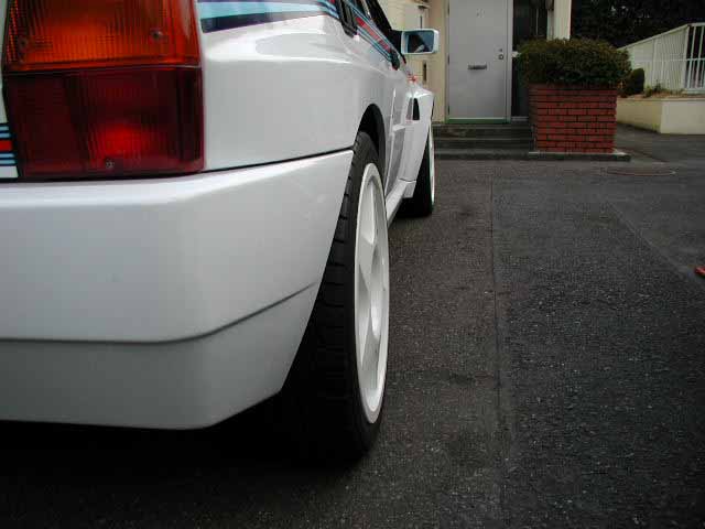 ホイールを換えてみました。このホイールはまる5が納車される数ヶ月前に気の早いことに既に手に入れてました。モノはSPEEDLINEのCHAMP-Rです。16vの時も履いてたんですが掃除も楽だし、直線的なデルタのボディーに似合うかなーと思ってまた同じモノを付けました。サイズは8J−17インチです。 |
