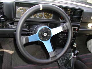 純正のステアリングです。フェラーリの348の純正で付いてるのと同じに見えるけどどうなのかな? 握りの感じはいいんですが、ちょっと径が大きいので交換しました。