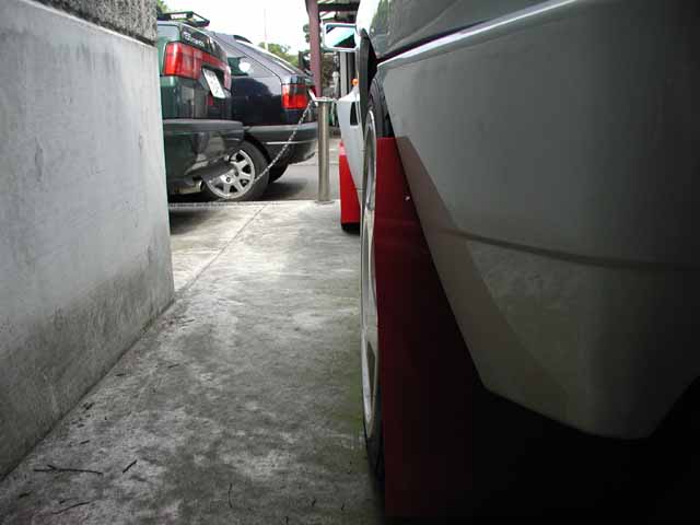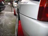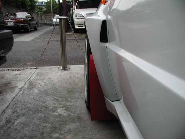 | 見た目にこだわるならやはりツライチでしょう。ということでフロント、リアにスペーサーを付けました。 サイズはフロントが15mm、リアは5mmです。元々付けてるホイール(スピードライン チャンプR)のオフセットは30mmなのでノーマルホイールよりは外に張り出してました。それでリアはそのままでも良かったんですが、フロントはまだ物足りなかったのでスペーサの装着となりました。 |