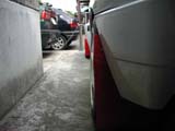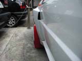 | タイヤをノーマルの15インチから17インチにしてから、ハンドルを一杯まで切るとインナーにタイヤがガリガリ当たってたんですが、スペーサーを付けたために一杯まで切らなくてもガリガリと当たるようになりました。(^^; 交差点曲がるだけでも擦れるので、削れて無くなるのも時間の問題かと思います。何とかしなきゃ。(^^; それからスタッドボルトなんですが、前後とも82mmを使ったんですが、そんなに長いのはいらないですね。もっと短くて良かったみたいです。 |