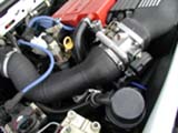 サージタンクからブローオフバルブとかに繋がってるホースを換えました。プラグコードも青なので色が統一できていい感じになりました。