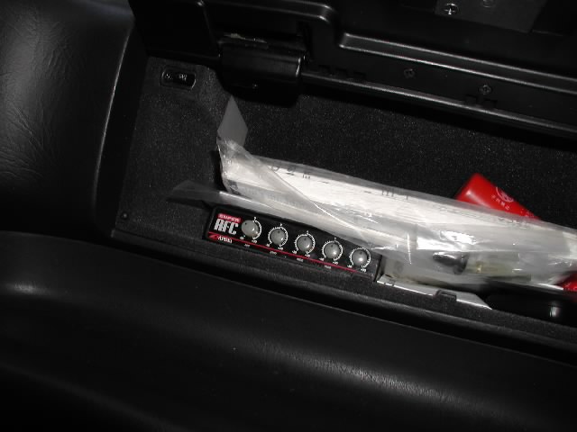 取り付け作業は写真撮るのが面倒だったのでサボっちゃいました。(^^; 写真は作業完了後。あんまり人目に付くところに付けたくなかったので、グローブボックスの中に付けました。