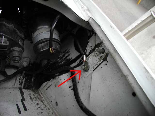 バッテリーからの「−」はここに繋げました。ここは平らで塗装がはがし易く端子を付けやすかったです。 |