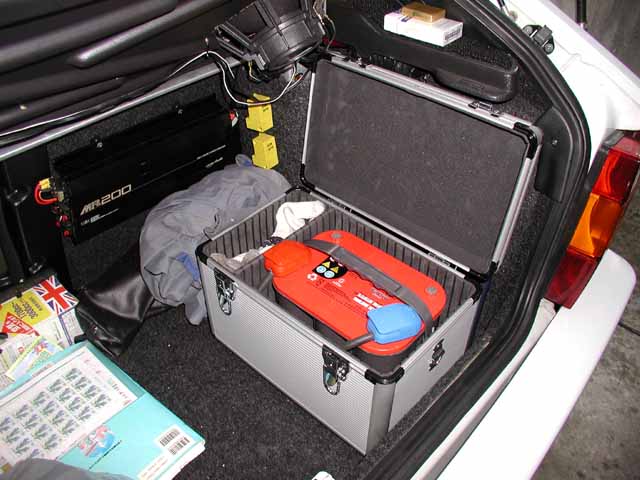 | バッテリーがダメになったので、交換ついでにトランクに移設しました。 |