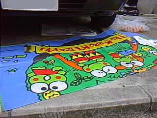 B'sでブチさんがジャッキアップしたり降ろしたりを繰り返していたんだけど、何度もやる体力ないので(汗)デルタの車庫入れに使ってる段差のショックを和らげるための板に前輪を乗せることにしました。要は潜ってドレンボルトを外すことが出来ればいい訳で。 |