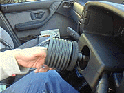 あとはクルクル回して。写真撮るの忘れたけど、ステアリング引っこ抜くのが最も力を要します。純正ステアリングの裏からドンドン叩いて車体がゆっさゆっさするほど力入れてステアリングをまっすぐ引っこ抜きます。ハタからみると「おいおい一体なにやってんだよ」と心配されるくらい力入れてください(笑) |