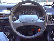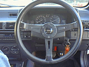 まず、車をまっすぐとめます。うちのはステアリングがちょい左に切れていたのでこうなります。今回まっすぐに治しちゃいます。 はい純正のステアリングですね。見慣れてますね。momoのステアリングを重ねてみて判ったのですが正円ではないようです、コレ。円の内側にある若干えぐられてる部分もなかなか違和感あったんです(^^; |