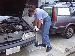やっとですネ。オイル交換したのです。手順的には△と同じ方法。で、MATSUの監視の元、えっちらほっちら作業したです。まず、買いましたのはこちら。 オイルはsono氏からヘインズマニュアルの推奨値聞いて、カストロールXF−08にしようと当初思っていたんだけど、結局BPになっちまいました(^^; で、エレメントも買ったのだけど、ZX93年式に対応しているエレメントって2種類あって、クチの径は同じなのに本体が一回り大きいのとクチの径と殆ど変わらないの。何となく大きい方が付いていたような気がして買ってみたモノの、実際比べてみると付いていたのは細い方だったりして(^^;;;写真は太い方ね。あと、オイル買った日、エアコンきってバックで駐車するとき、何とエンスト。何かアイドリングが不安定でのぅ〜<オイルきちゃないから?で、MATSUがキャブクリーナーを購入。手を施して貰うことにしましただ。あとは6リットル入る廃油処理箱ネ。我が家の場合、オイルの交換は上からオイルを抜くやり方で作業しますだ。ポンプでしゃこしゃことね。これ服が汚れなくて非常に良いのよ。