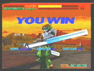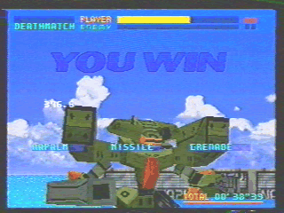 私が初めて使用したのがこのバーチャロイドです。迷彩塗装とトンファーに魅せられてね(^^;。 テムジンの格闘能力をパワーアップした感じで、白兵戦でその能力を最大限に発揮します。しかし、XBAND版になってショットガンの性能があがったため、射撃戦だけでもいけるようになりました。おかげで、アーケードでは最弱説まででたこのバーチャロイドですが、XBANDでは1、2を争う機種となってます。 でも、やはりアファームドはトンファーでしょう。トンファーを当ててこそ、アファームドに乗る価値があるというものです。ですが最近では、トンファーを硬直キャンセルにしか使用せず、ショットガンしか使わない人が多いので困り者です。 |