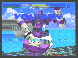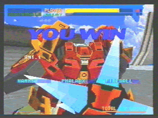 ニュータイプ専用とも思える特殊なバーチャロイドです。ハンドビットによる遠隔攻撃は、結構楽しいです。あまり当たりませんけど(^^;。 このバーチャロイドの装甲は薄く、ダッシュ性能も最低のレベルになってます。しかし、ジャンプ性能はピカイチでしょう。 あまり前向きな武装(^^;をもたないためか、逃げながら攻撃というのが標準的な攻撃スタイルになってます。そのため、嫌われもの扱いを受けることもしばしばあります。私も嫌いだったりします(^^;。 これまた使用頻度の低いバーチャロイドであります。それはあまりにも特殊過ぎる性能にあるでしょう。装甲が薄いため、避けることが非常に大切になってきますが、ダッシュはあまり使えずジャンプを多用するしかありません。攻撃もとっさに撃てる武器がないため、接近戦ではあまり約には立ちません。そのため遠距離に逃げようとすることが多いです。 しかし、ジャンプとリングレーザーを上手く使うと、ほとんど攻撃を受けることがなくなります。こういった相手はイライラするぐらい強いです。 |