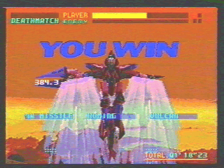 もっとも薄い装甲と、もっとも高い空戦能力を有するバーチャロイドです。 もともと偵察用のバーチャロイドであるのですが、その攻撃力はかなりのものがあります。連射性能に優れたバルカン、広範囲に撃て威力もなかなかの7WAY ミサイル、そして破壊力とホーミング力に秀でたホーミングビーム。これらを使いこなせばかなりの戦闘力を発揮します。 しかし、その貧弱な装甲のため、一瞬の油断が命取りになる、非常にスリリングなバーチャロイドでもあります。使いこなすのもかなりのレベルが要求されるので、上級者向けのバーチャロイドでしょう。 しかし、そのカッコ良さから人気は上上で、使用頻度はけして低くはないです。 対空性能の低いドルカスやベルグドル等にとっては、かなりいやな存在でしょう。 |