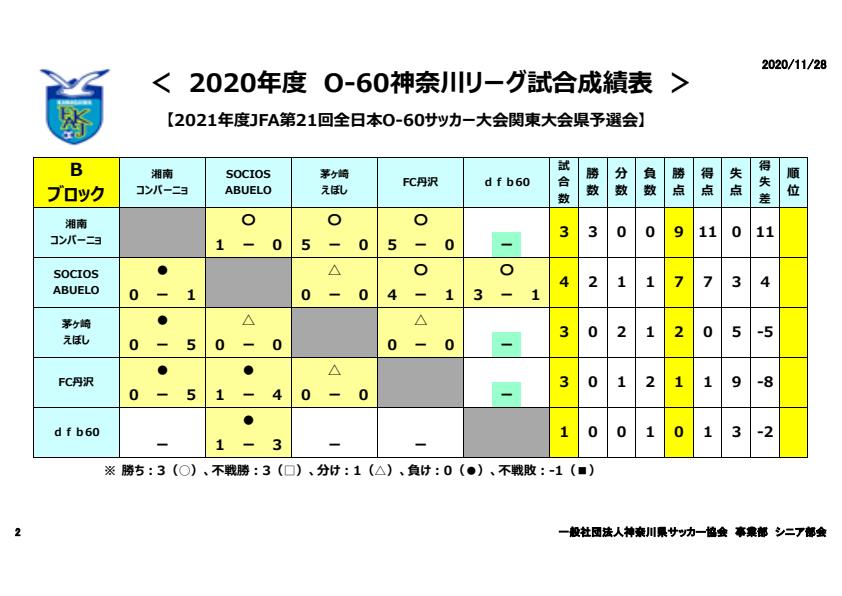 | 2021年度 シニアリーグ2部 例年通り4月開幕 最終戦の平塚戦は2対2の引分けでリーグ終了 ●○○○○○△○△ 3位