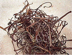 乾燥したゼンマイを新聞紙やゴザなどの上に広げ、両手でよります。(つまりは、手の平を使ってゼンマイを転がす‥‥とでも言うの?)