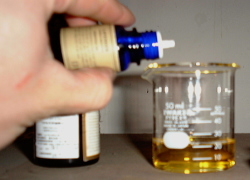 | まず、道具を用意します。 | ビーカーに作りたい分だけキャリア オイルを入れます。 |