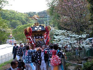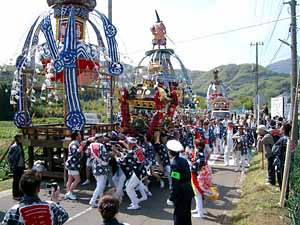 | 伊勢原 三之宮比々多神社大祭の様子です。 引き続き、渡御道中の模様をどうぞ。 2003.04.22撮影 |