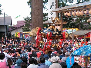 | 伊勢原 三之宮比々多神社大祭の様子です。 引き続き、宮入の模様をどうぞ。 2003.04.22撮影 |