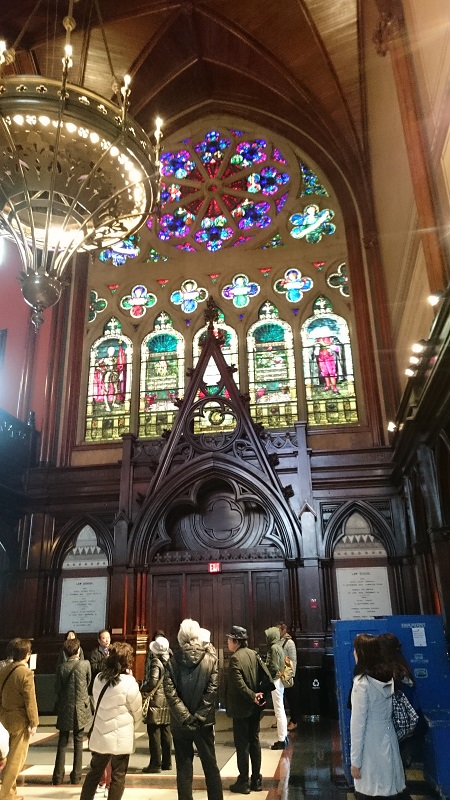 ハーバード大学の後は高級住宅街のビーコンヒルに向かいます。ガス灯の街灯が並ぶチャールズ通りや絵葉書で紹介されるエーコン通り、ケリー国務長官の自宅がある建物など赤いレンガの建物が並ぶ街並みを見て回ったあと、ボストンコモン(公園)の観光案内所から始まるアメリカ独立の史跡を巡るフリーダム・トレイルに沿ってあゆみを進め、たどり着いたクインシーマーケットでハンバーガーの昼食です。昼食の後はボストン美術館の見学です。中には日本のお寺を模した部屋もあって仏像が展示されたりしていました。
