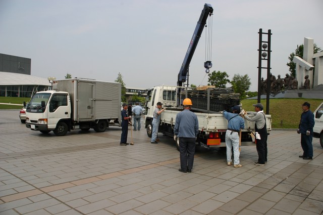 最後は枠ごとクレーンでトラックに積んで、撤収完了です。