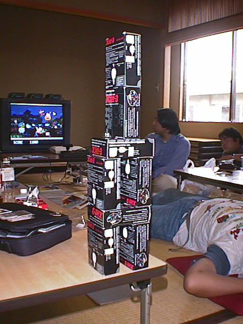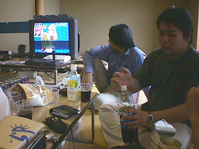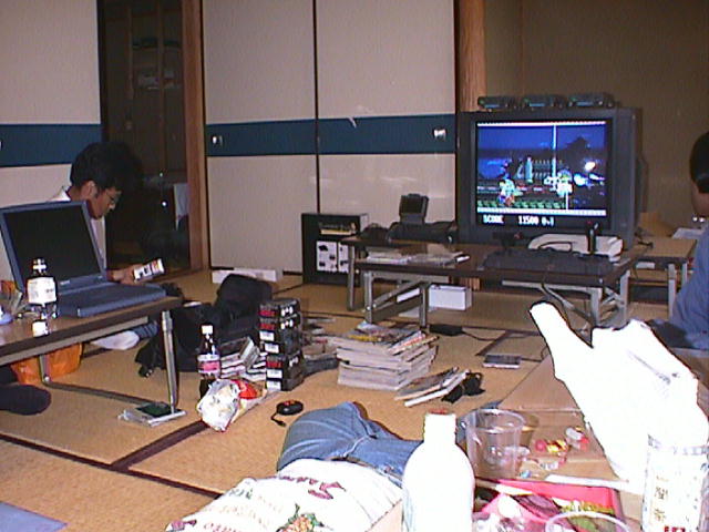 ご飯を食べ、まったりしたところで、真打登場! 恒例 「ファイティングストリート」セルバンテス模範プレイ 「アフターバーナーII」わたる-まな板-プレイ 「オペレーションウルフ」Clifford-まな板-プレイ 「激写ボーイ1」「ドラキュラX」T.kさん模範プレイ 「マジカルチェイス」わたる模範プレイ 「カードエンジェルス」たまねこ初プレイ CyberStickでの「アフターバーナー」には、ただ感動。そのうち買います、ええ。