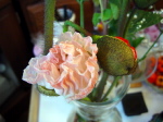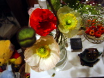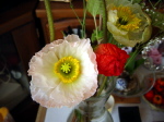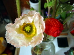 昨日しーちゃんが買ってきてくれたポピーはツボミが5つだった。硬い産毛の生えた殻に閉じこめられて何色なのかもまったくわからない。昼間ガサッと音がしたと思ったら開き始めているではないですか!こりゃ面白い・・・時間ごとに写真に撮ってみた(*^o^*)徐々に開き感動していたらノーケアだったツボミ(オレンジの右上)が突然開いた。感ドー!!!生きているって実感しましたよ。そうしたら、なんだか散っていく姿を見るのが怖くなってしまった。このまま終わりがなければいいのに・・・でも終わりがあるからこの瞬間がステキなんだよね。価値があるんだよね。ほんのちょっと生きているこの中にギュッと詰まっているんだよね。・・・なんて、なっちゃんとちょっと難しいお話してました。写真を撮ってこんな風にしたいなあとイメージはあれど、私の今のHTML知識ではかなりハードルが高かったようで、妥協となってしまった。4日もHTMLの本やら参考webページと格闘したのになあ(TOT)・・・本日10日、この日ができてないために更新遅れてました