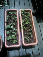 「原坊のあさがお」はスクスクと大きくなって葉っぱも大きくなってきた。さすがにそろそろ植え替えをしなければなあ・・・予想をはるかに超えた数が育っているので植え替えても狭いかな。あさがおさん、ごめんなさい_(._.)_まあ今までは卵パックだったからそれよりは住み心地いいと思うよ。たまごパックの方はポコッと一つづつほぐれやすくて良かったけれど、諦めモードでスチロールにバラまいた方はすでに根がからみあっててほぐすのが可哀想だった。今思えばそのまま鉢にうえれば良かったね。無理にほぐしてしまってごめんなさい。さてさて新しい所の住み心地はいかがかな?植え替えた途端に台風ってのが心配ですが・・・ 案の定、この作業の間に5カ所も刺された(TOT)